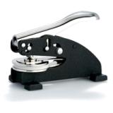 Клише крепится в металлическом корпусе (карманном или настольном варианте), который обеспечивает необходимое давление. При нажатии на ручку - плашки оснастки сжимаются, оставляя изображение на бумаге или самоклеящемся лейбле.